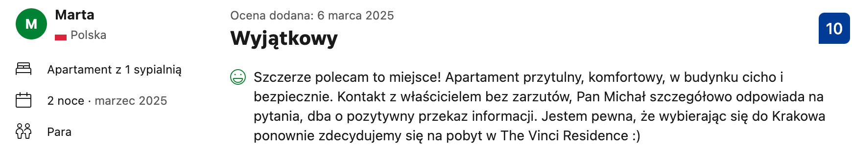 Nie — zameldowanie jest całkowicie samoobsługowe. Kody dostępu do budynku i apartamentu otrzymasz przed przyjazdem.